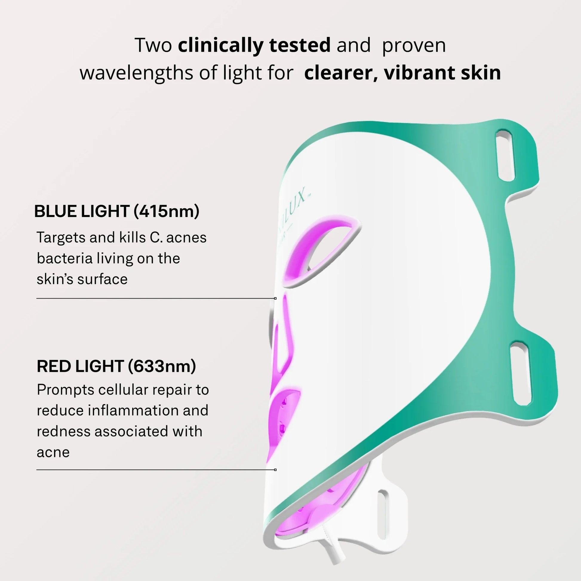Based on the world’s leading Omnilux MedicalTM light therapy technology, Clear is an FDA-cleared flexible, portable, affordable home-use device that uses light emitting diodes (LED) to reduce or eliminate mild to moderate acne vulgaris and reduce the appearance of redness and inflammation.How does it work?Optimized energy output and two clinically proven wavelengths of light (red 633nm and blue 415nm) work on a cellular level to kill acne-forming bacteria in the sebaceous glands.What is the recommended treatment regimen for Clear?We recommend using the Clear device 4 times per week for 6 weeks. After the initial 6 weeks, you should only use Clear at the earliest signs of breakout. PLEASE NOTE: You should not use the Clear device for more than 6 weeks consecutively. After 6 weeks we recommend giving your skin a break. CONTRAINDICATIONS