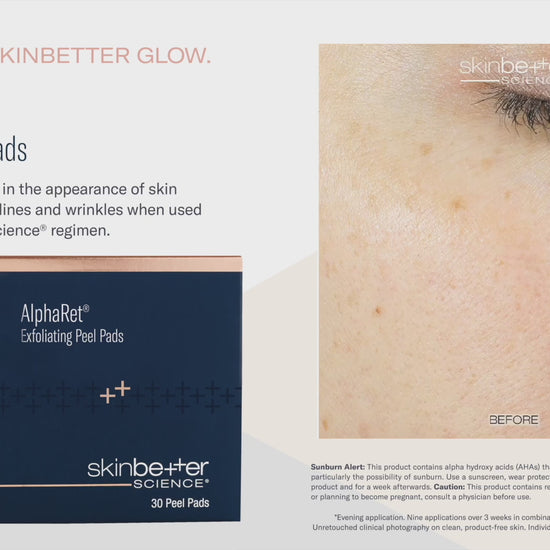 Skinbetter Science® Alpharet® Exfoliating Peel Pads feature an award-winning retinoid, AlphaRet®, a unique technology that is made up of a combination of a retinoid and an alpha hydroxy acid (AHA), along with a 20% triple-acid blend of glycolic, lactic and salicylic acid, in individually packaged pads.