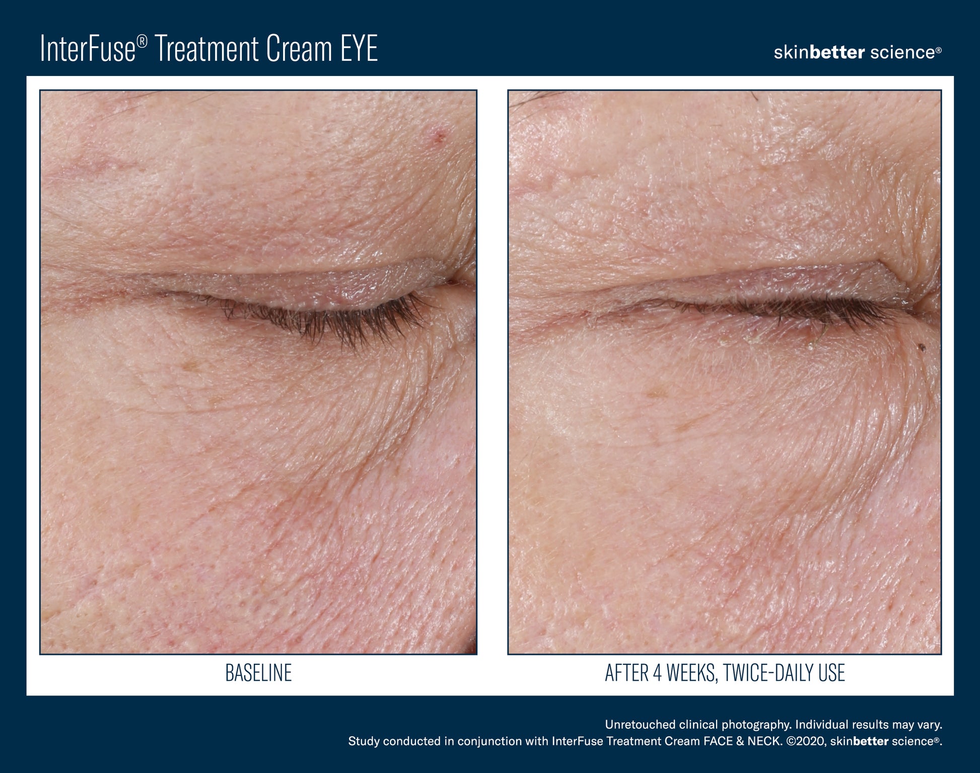 Skinbetter Science® Interfuse® Treatment Cream EYE is a powerful, multi-award-winning eye cream that recharges the eye area. It improves the appearance of crow’s feet, wrinkles, puffiness and under-eye darkness.