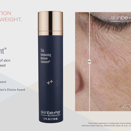 Skin works best when it’s properly hydrated. This high-performance, triple-action formula helps to bring moisture and hydration balance back into the skin. Skinbetter Science® Trio Rebalancing Moisture Treatment™ contains a patented formulation that uniquely brings balance back to dry skin.