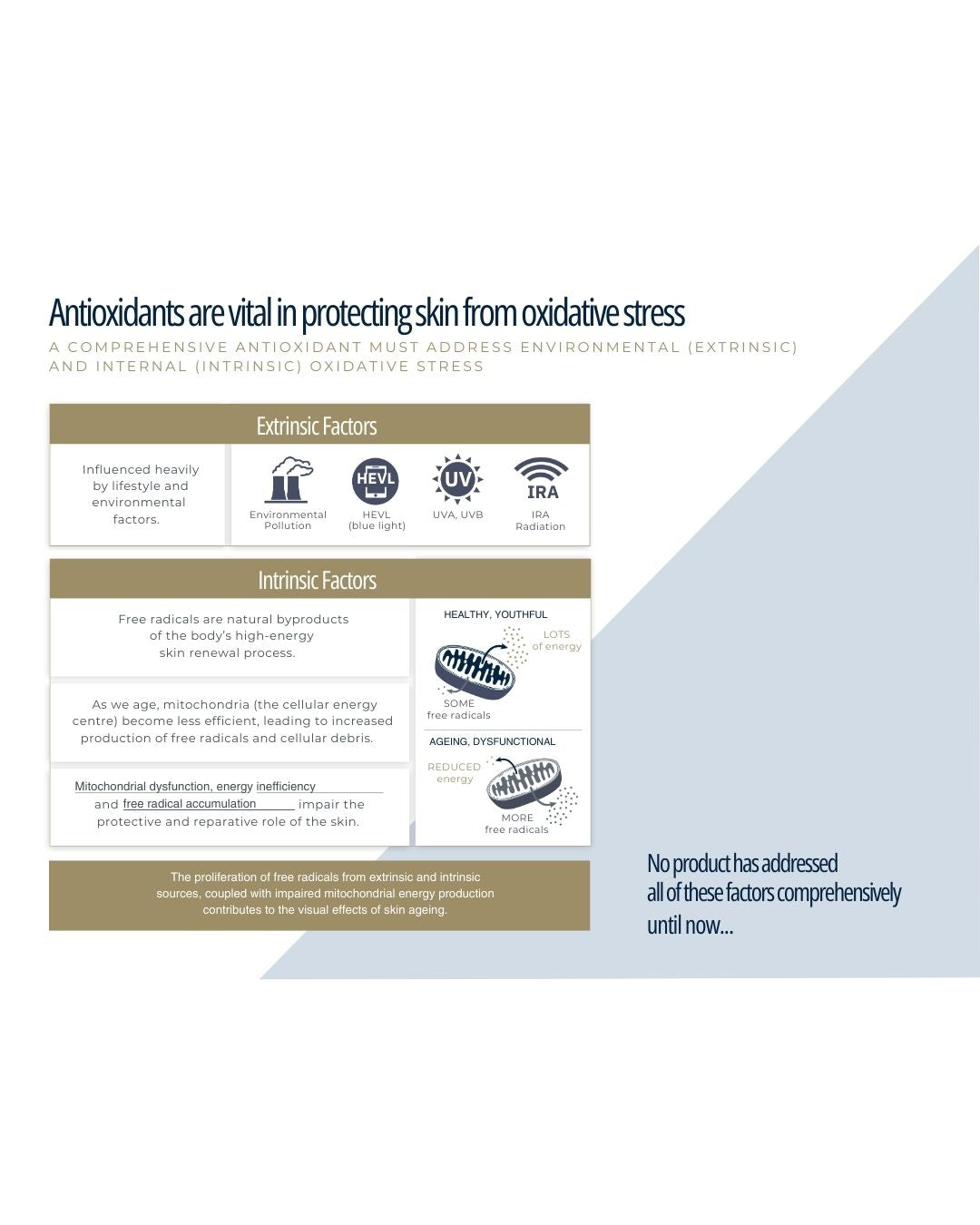 Neutralises intrinsic free radicals generated by the skin’s natural ageing process.