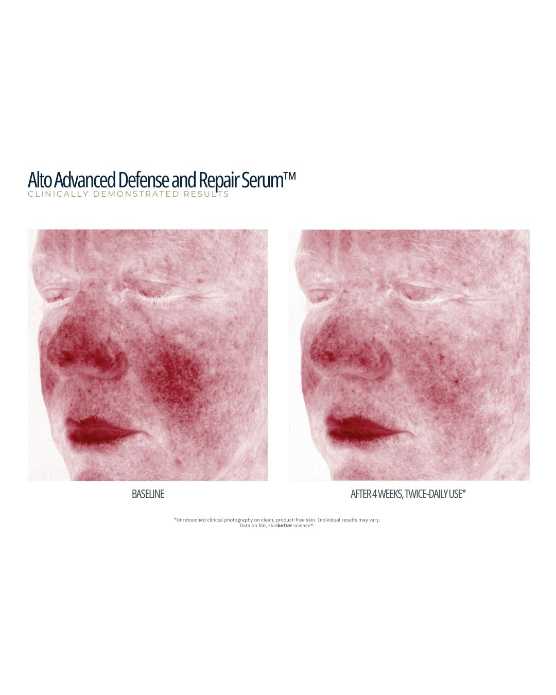 SkinBetter Science Alto Advanced Defense & Repair Serum is a super-potent antioxidant serum that helps shield the skin against the effects of internal and external free radicals whilst improving the appearance of skin dullness, redness and overall tone and texture for a brighter, more radiant-looking skin. Vitamins C and E, plus 17 additional free-radical fighters combined with a new, patented antioxidant, brings a new level of comprehensive defence.