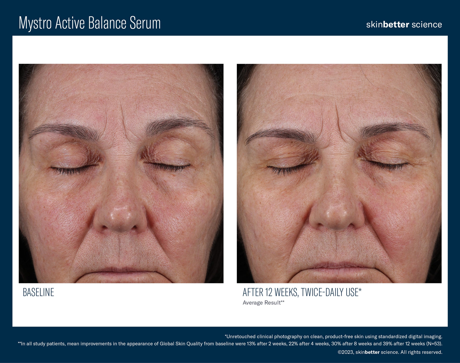 Significant improvement in the appearance of redness, dullness, pore size and uneven pigmentation after eight weeks of twice-daily use.