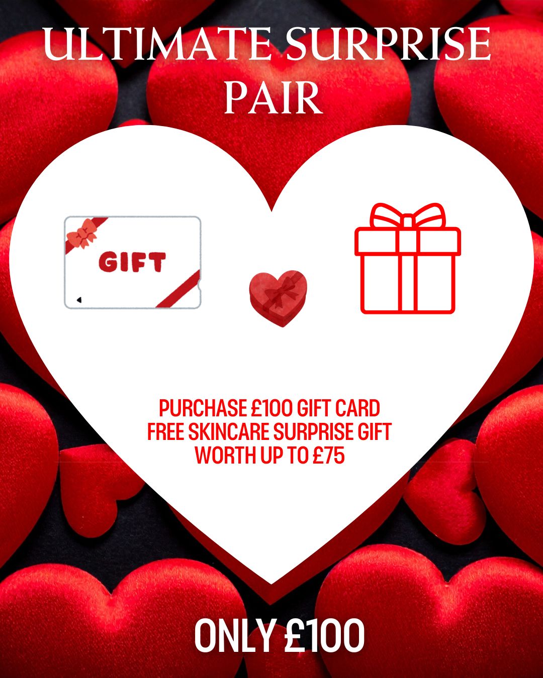 With our Ultimate Surprise Pair, when you purchase a Ā£100 Gift Voucher, youāll also receive a FREE Skincare Surprise Gift worth between Ā£40āĀ£75.